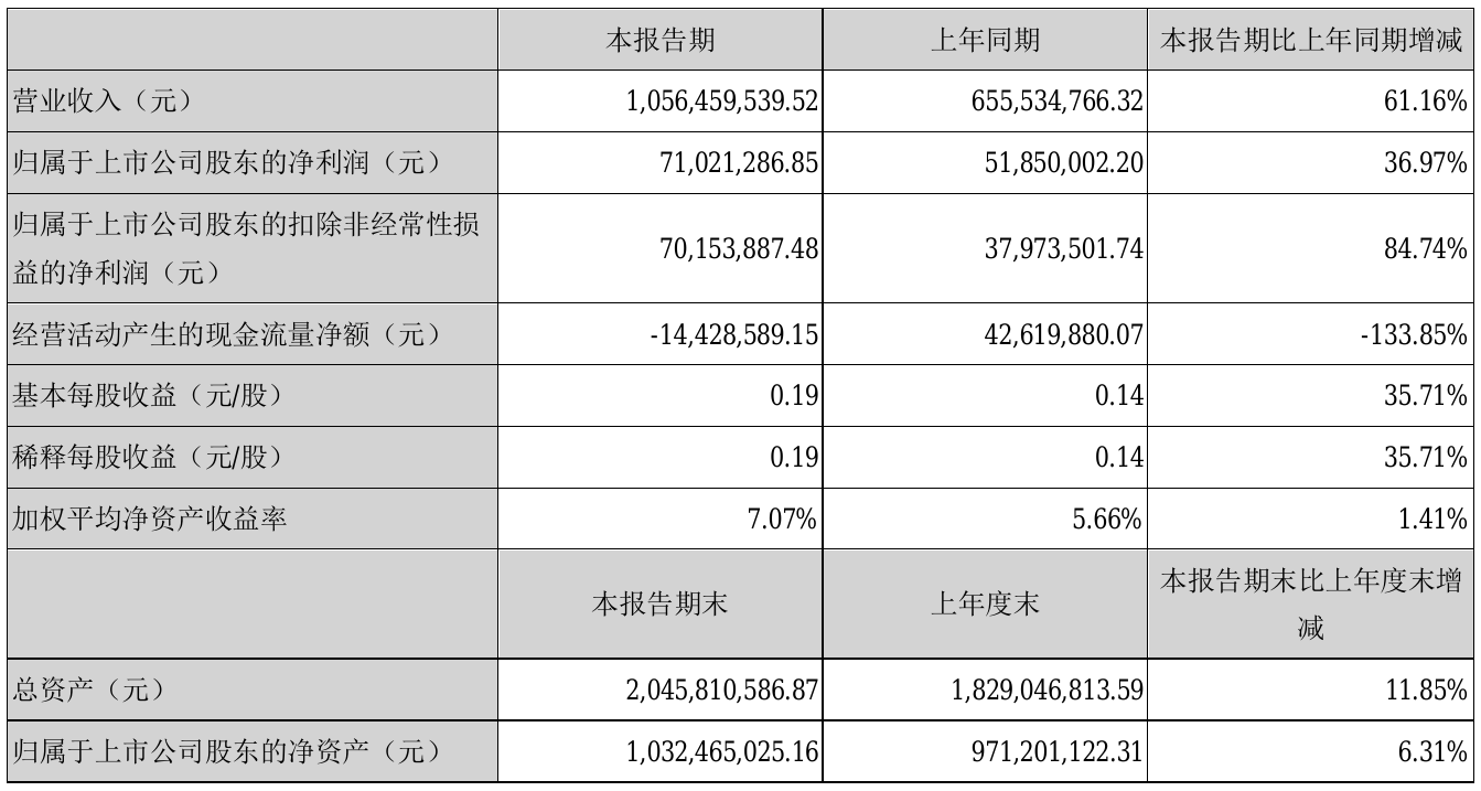 8月23日,康强电子(002119)近日发布2021年半年度报告,报告期内营业收入1,056,459,539.52元,同比增加61.16%;净利71,021,286.85元,同比净利增加36.97%。