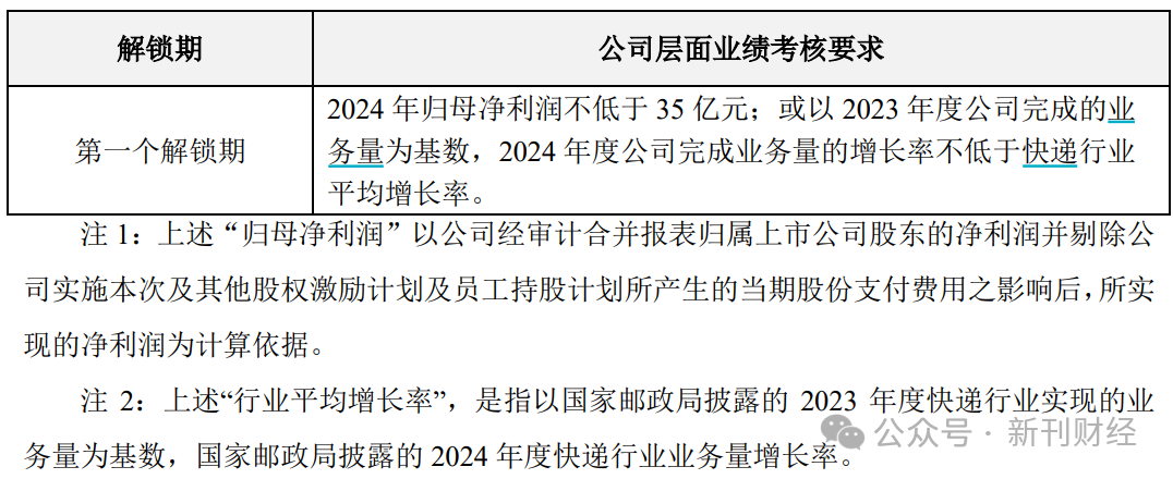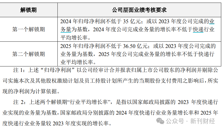 韵达在员工持股计划中虽设置了双重考核标准,但实行的是“或”选项。虽然净利润目标几乎不可能实现,但基于特殊的基期选择,2025年业务量增速达标却相对容易,这使得净利润目标形同虚设,整个持股计划的激励效果大打折扣。