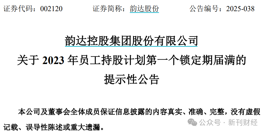 6月6日晚间,韵达股份(002120.SZ)发布公告称,公司2023年员工持股计划第一个锁定期将于6月9日届满。