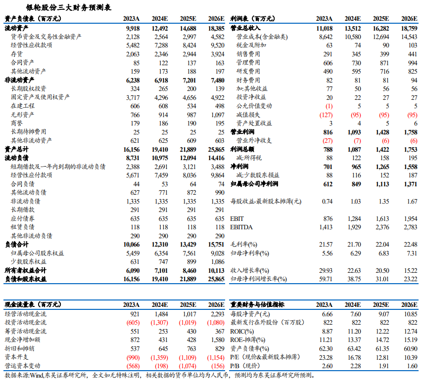 我们基本维持公司2024-2025年归母净利润分别为8.49亿元、11.13亿元的预测,预计公司2026年归母净利润为13.71亿元,对应EPS分别为1.03元、1.35元、1.67元,市盈率分别为16.78倍、12.81倍、10.39倍,维持“买入”评级。
