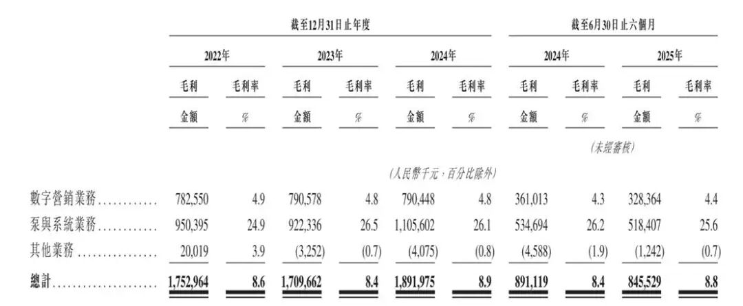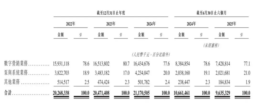 各期内,利欧股份数字营销的收入占比为78.6%、80.7%、77.6%及77.1%,而泵与系统的收入占比分别为18.9%、17.0%、20%、21%。