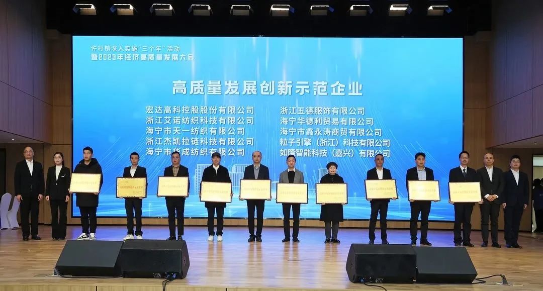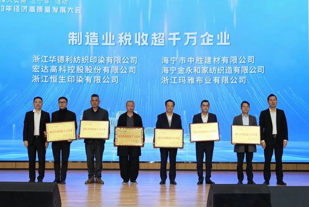 2月21日,海宁市许村镇召开深入实施“三个年”活动暨2023年经济高质量发展大会,回顾总结过去一年工业经济工作情况,表彰奖励一年来为许村经济发展做出突出贡献的企业和单位,动员全镇上下以先进为榜样,立足优势、开拓创新,奋力实现现代和美许村高质量发展新跨越,在奋战海宁市“争先奋进年、工业跃升年、创新变革年”活动中交出高分答卷。宏达高科获评2022年度制造业税收超千万企业和高质量发展创新示范企业。