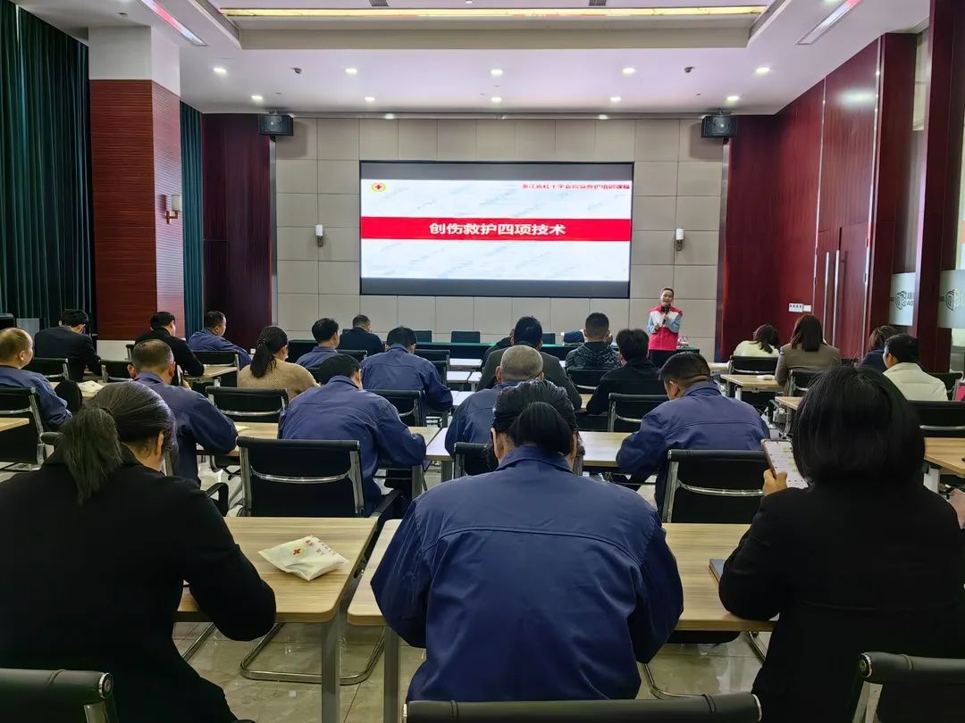 理论培训课上,海宁市红十字会经验丰富的老师结合日常遇到的突发情况为学员讲解救护知识,重点讲解了止血包扎、心肺复苏、AED使用等急救方法,老师讲解细致,学员们认真听课,积极互动。