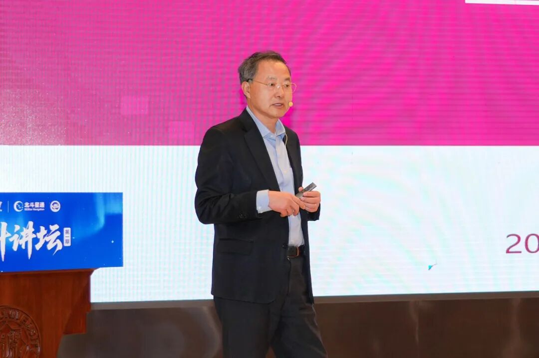 周儒欣董事长在报告中表示,当今世界正处于百年未有之大变局,科技竞争成为核心变量,实现高水平科技自立自强尤为关键。他从“变”字讲起,围绕北斗系统建设、求学与工作的寻路历程、北斗星通的企业经营实践等在讲坛作了精彩分享。