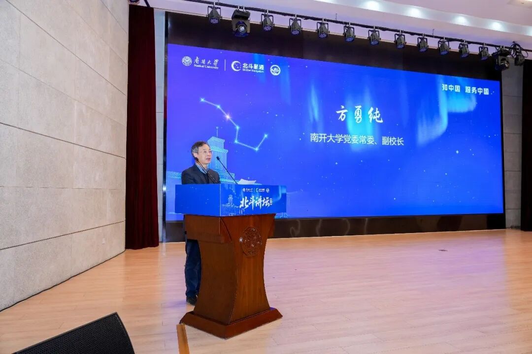 方勇纯代表学校向长期以来关心、支持南开大学发展的各界人士表示感谢。他高度评价了周儒欣带领北斗星通积极服务国家战略、深耕卫星导航产业取得的一系列突出成果。他说,数学校友分会是连接南开与大数学学科校友的重要桥梁,希望以“北斗讲坛”为纽带,推动北斗产业与人工智能深度融合,持续不断深化南开“新工科”建设,促进“校友生态”融合,吸引更多校友回到南开、支持南开,为中国式现代化建设贡献南开智慧、提供南开方案。