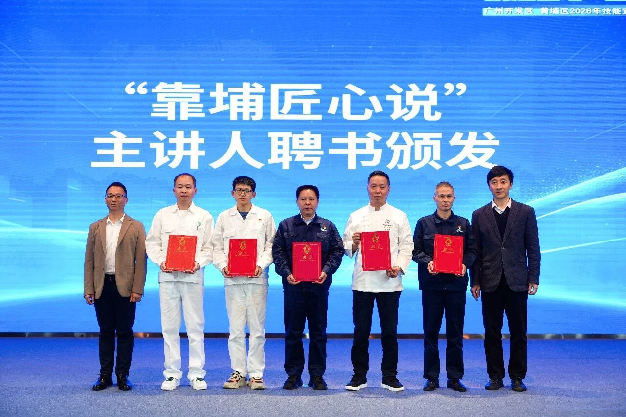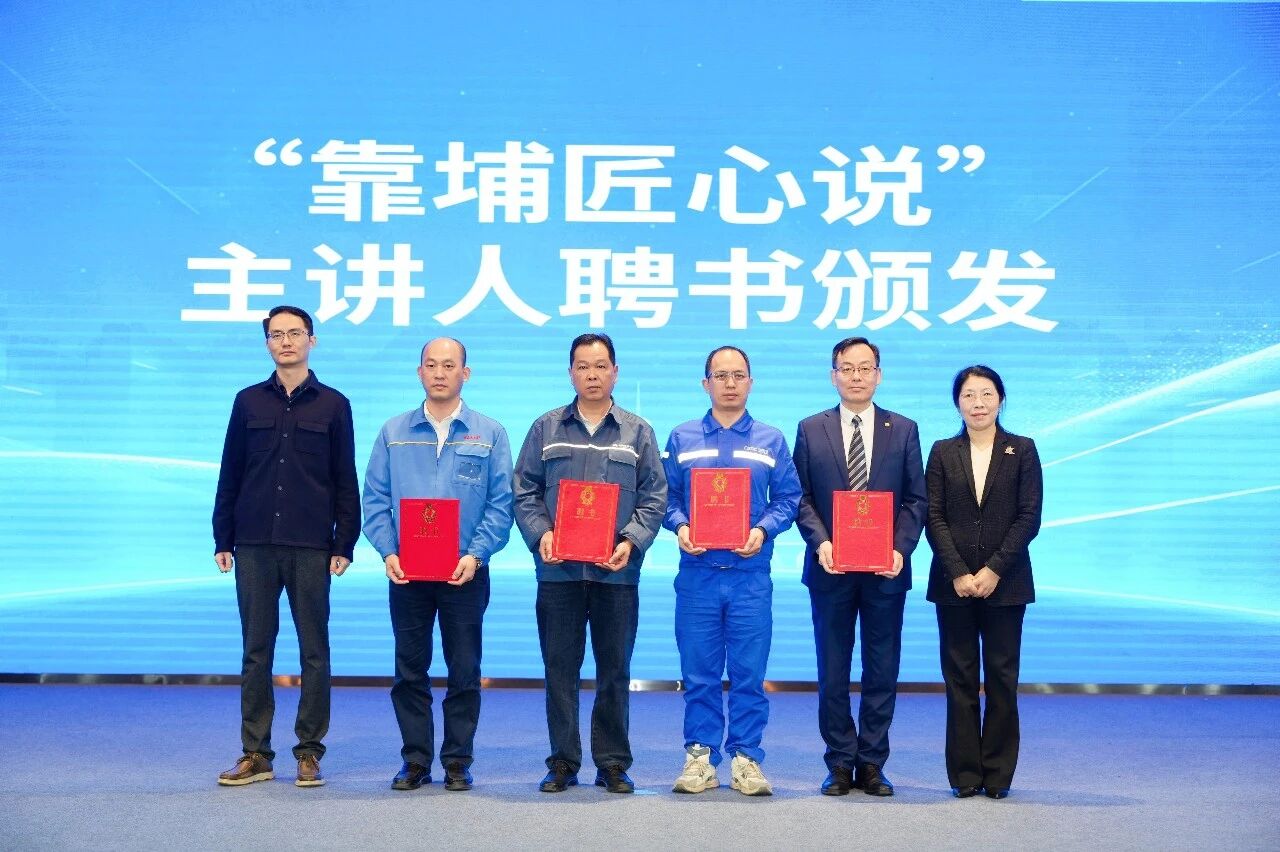 随后,现场隆重举行了“靠埔匠心说”主讲人聘书颁发仪式。九位来自人工智能、高端制造、能源电力、船舶修造、餐饮服务等领域的优秀技能人才正式被聘为主讲人。其中,我司总工程师、研究总院院长,2024年区第七届技能工匠一等奖获得者田丰位列其中。在市、区两级人社部门领导、企业工匠代表的共同见证下,2026年度“技遇匠心·五进传艺”技能宣讲月活动正式宣告启动。