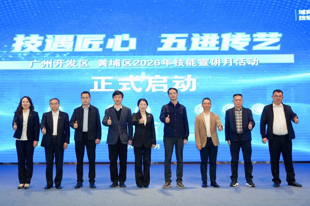 为深入弘扬工匠精神,营造“劳动光荣、技能宝贵、创造伟大”的社会氛围,由黄埔区人力资源和社会保障局主办,广电运通集团股份有限公司承办的“技遇匠心·五进传艺——广州开发区、黄埔区2026年技能宣讲月活动”于2026年3月10日上午在广电运通数据产业园正式启动。本次活动标志着年度技能宣讲系列活动的全面展开,旨在推动高技能人才与先进技艺走进企业、校园、社区、乡村和网络,为区域高质量发展注入强劲的技能力量。