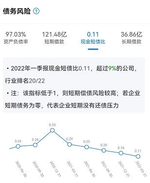 从企业的偿债能力看,资产负债率自2021年以来已经连续6个季度持续上升,在2022年3月末已经达到97.03%,负债规模过高,预计公司在未来一段时间内面临的债务压力将非常大。从短期债务情况看,公司目前的现金短债比为0.11,且呈持续下降趋势,短期内偿还债务的风险较高;从摸象APP上了解到,截止2022年3月末,正邦科技的短期借款高达121.48亿元,而本次逾期的5.42亿元商票仅仅是其中的冰山一角。