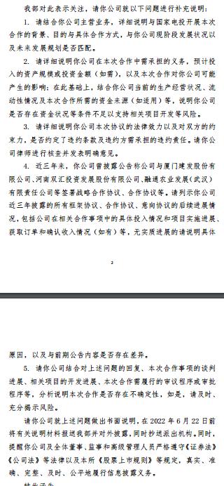 宣布“跨界”新能源的次日,正邦科技收到深交所关注函,要求结合公司主营业务,详细说明与国家电投开展合作的背景、目的与具体合作方式,与公司现阶段发展状况以及未来发展规划是否匹配;详细说明公司在此次合作中需承担的义务,预计投入的资产规模或投资金额,以及此次合作对公司可能产生的影响;结合公司当前的生产经营状况、流动性情况及此次合作所需的资金来源等,说明公司是否存在资金状况等条件不足以支持相关项目开发等风险。