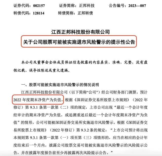 离中国新年还有几天,正邦科技突然披露一份公告,打破了生猪市场本就脆弱的神经——由于2022年净利润为负,按照证监会的相关规定,可能被退市。