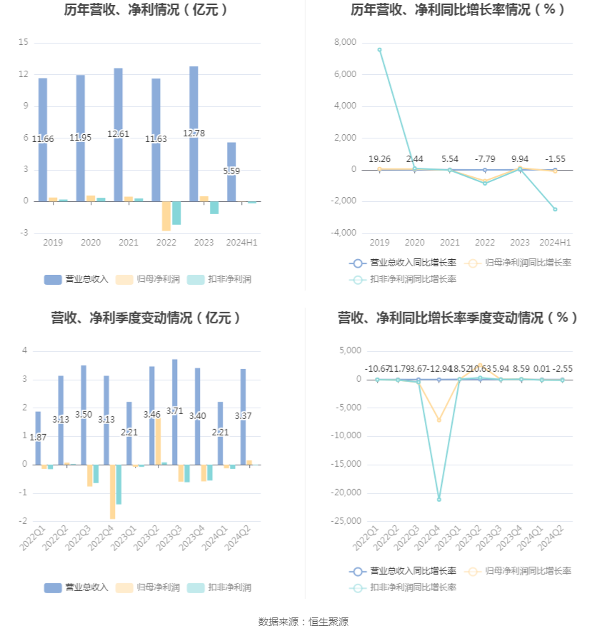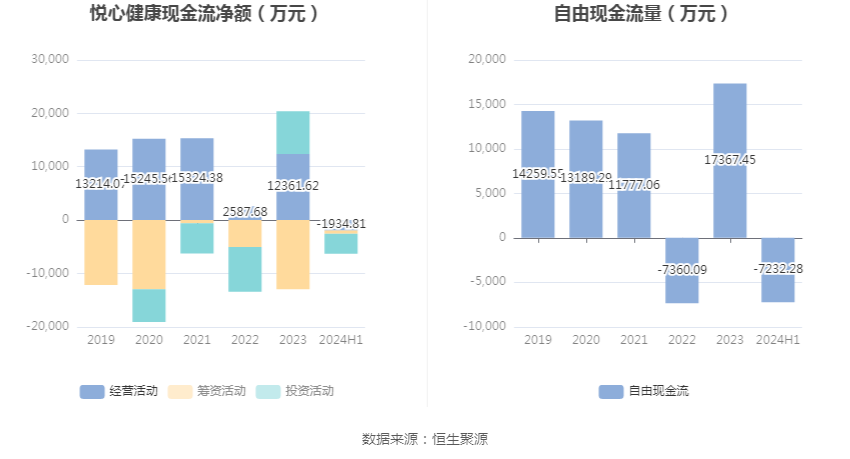 进一步统计发现,2024年上半年公司自由现金流为-7232.28万元,上年同期为6796.53万元。