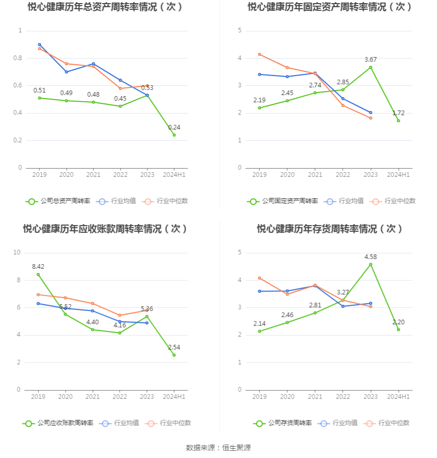 营运能力方面,2024年上半年,公司公司总资产周转率为0.24次,上年同期为0.23次(2023年上半年行业平均值为0.27次,公司位居同行业8/11);固定资产周转率为1.72次,上年同期为1.62次(2023年上半年行业平均值为0.94次,公司位居同行业2/11);公司应收账款周转率、存货周转率分别为2.54次、2.20次。