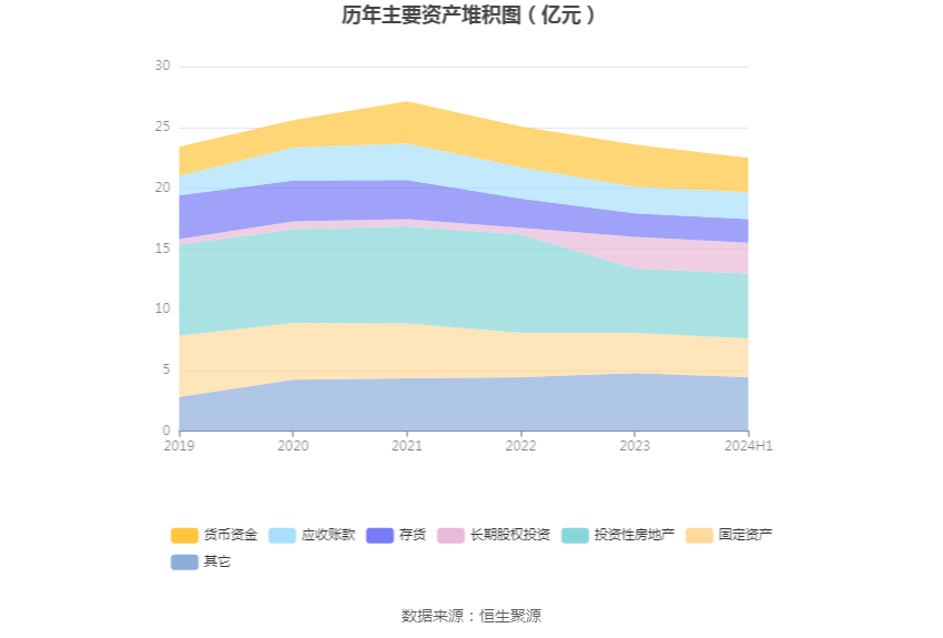 资产重大变化方面,截至2024年上半年末,公司货币资金较上年末减少18.02%,占公司总资产比重下降2.07个百分点;投资性房地产较上年末增加0.28%,占公司总资产比重上升1.16个百分点;应收账款较上年末增加0.84%,占公司总资产比重上升0.53个百分点;预付款项较上年末减少27.50%,占公司总资产比重下降0.40个百分点。