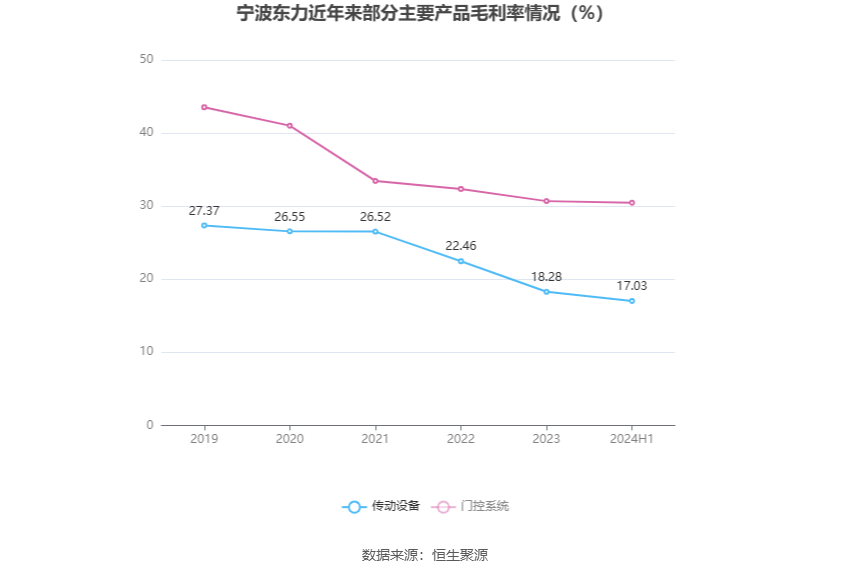 分产品看,传动设备、门控系统2024年上半年毛利率分别为17.03%、30.48%。