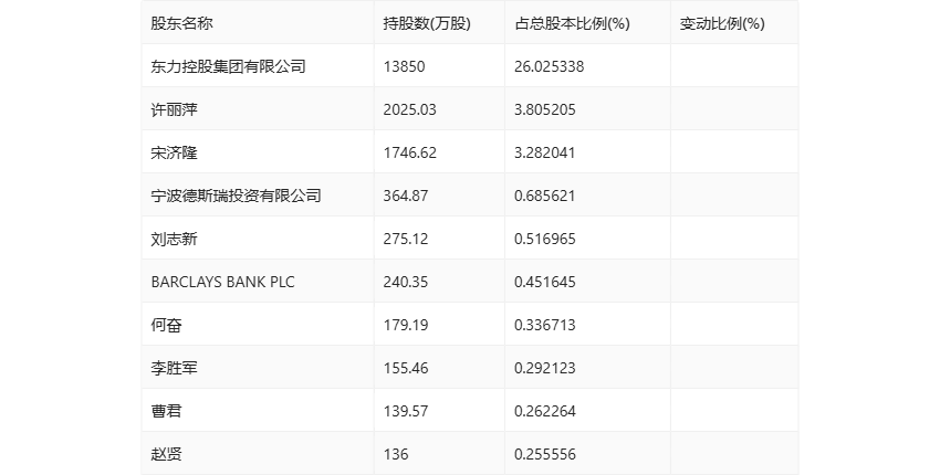 半年报显示,2024年上半年末公司十大流通股东中,新进股东为李胜军、赵贤,取代了一季度末的吴亚青、华泰证券股份有限公司。在具体持股比例上,宋济隆、BARCLAYS BANK PLC、曹君持股有所上升。