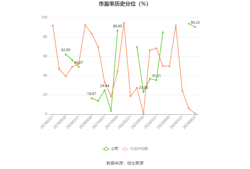 市盈率为负时,不显示当期分位数,会导致折线图中断。