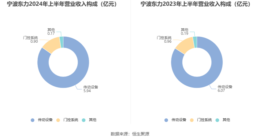分产品来看,2024年上半年公司主营业务中,传动设备收入5.94亿元,同比下降2.20%,占营业收入的84.69%;门控系统收入0.90亿元,同比下降5.84%,占营业收入的12.90%。