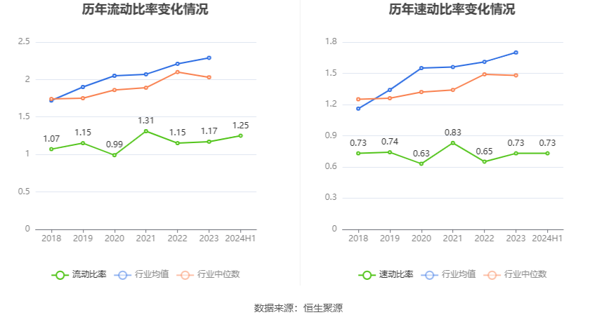 2024年上半年,公司流动比率为1.25,速动比率为0.73。