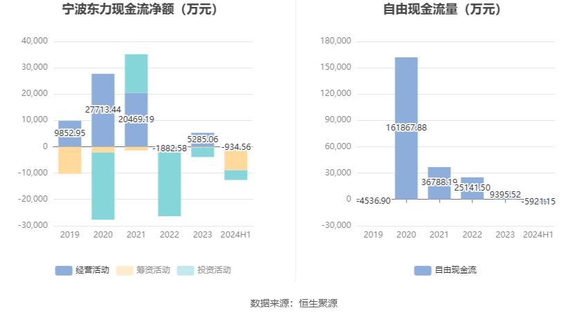 进一步统计发现,2024年上半年公司自由现金流为-5921.15万元,上年同期为-2994.08万元。