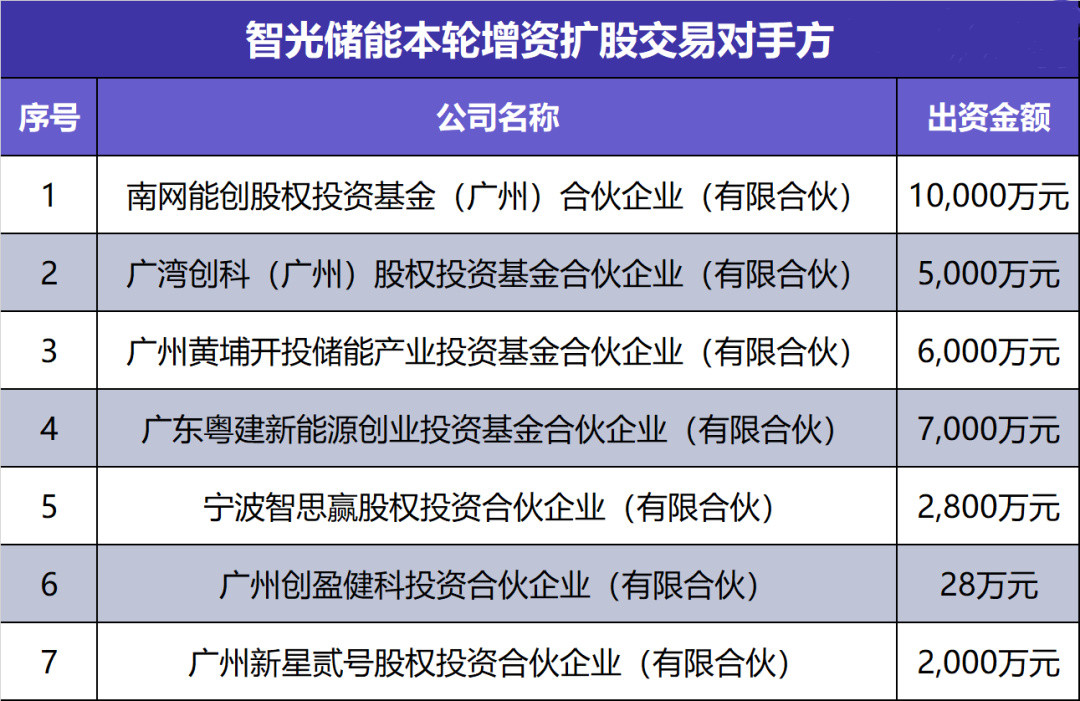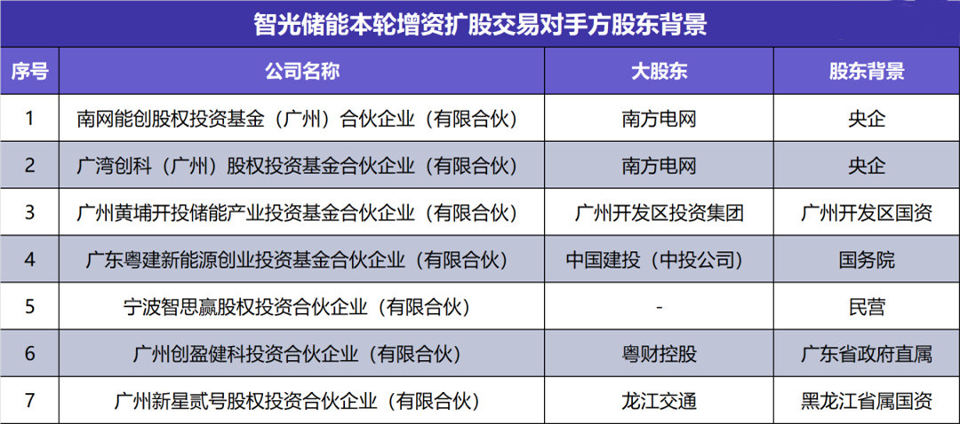 值得留意的是,智光储能本轮增资的交易对手方几乎均为国资背景。