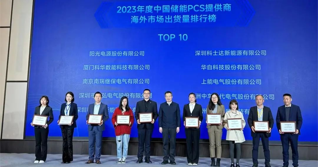 在大会举办的2023年度储能行业年度大奖颁奖典礼上,智光电气股份控股子公司智光储能凭借着出色的技术创新能力、卓越的产品质量以及优质的客户服务,荣登中国储能系统集成商2023年度国内市场出货量TOP10、中国储能系统集成商2023年度国内用户侧市场出货量TOP10及中国储能PCS提供商2023年度海外市场出货量TOP10。