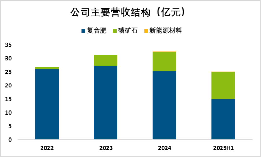 2024年,复合肥业务贡献26亿元,占总收入76.6%;磷矿石业务实现营收7.1亿元,同比增长82%。至2025年上半年,磷矿石业务收入已升至9.98亿元,占总营收比重提升至39.3%,成为公司第二大收入来源。