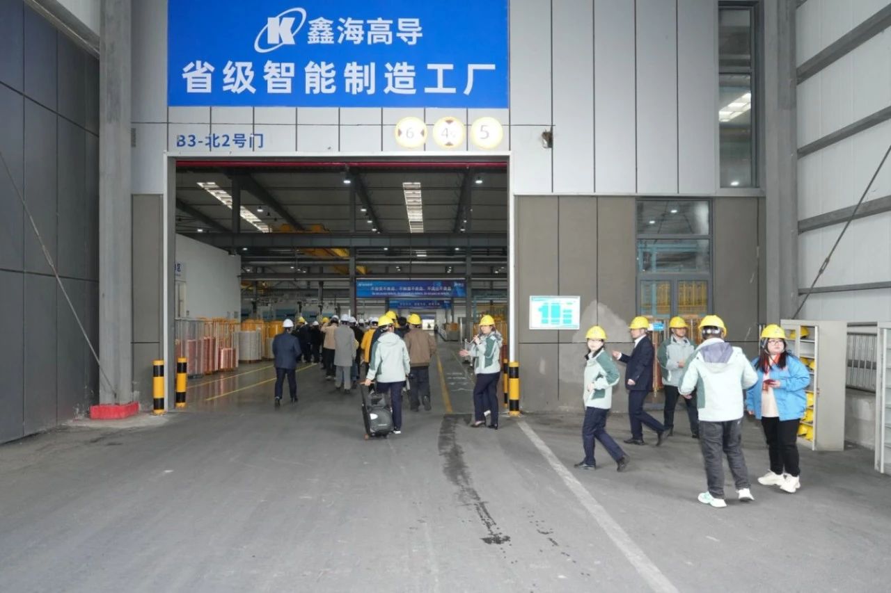 走进鑫海高导智能化生产车间,德国尼霍夫多头拉丝机组、全自动电镀锡生产线等正开足马力有序运转,AGV智能运输机器人托举着成卷的镀锡铜导体在车间内精准穿梭。据介绍,作为安徽省首批智能制造工厂,鑫海高导率先提出以高端精密设备打造“共享工厂”的服务理念,已构建“数据感知—智能决策—精准执行”的闭环体系,关键指标达到国际一流水平。