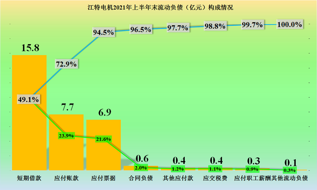 而其短期负债却很大,特别是短期借款就达15.8亿元,占比49%,应付账款和应付票据也不低。