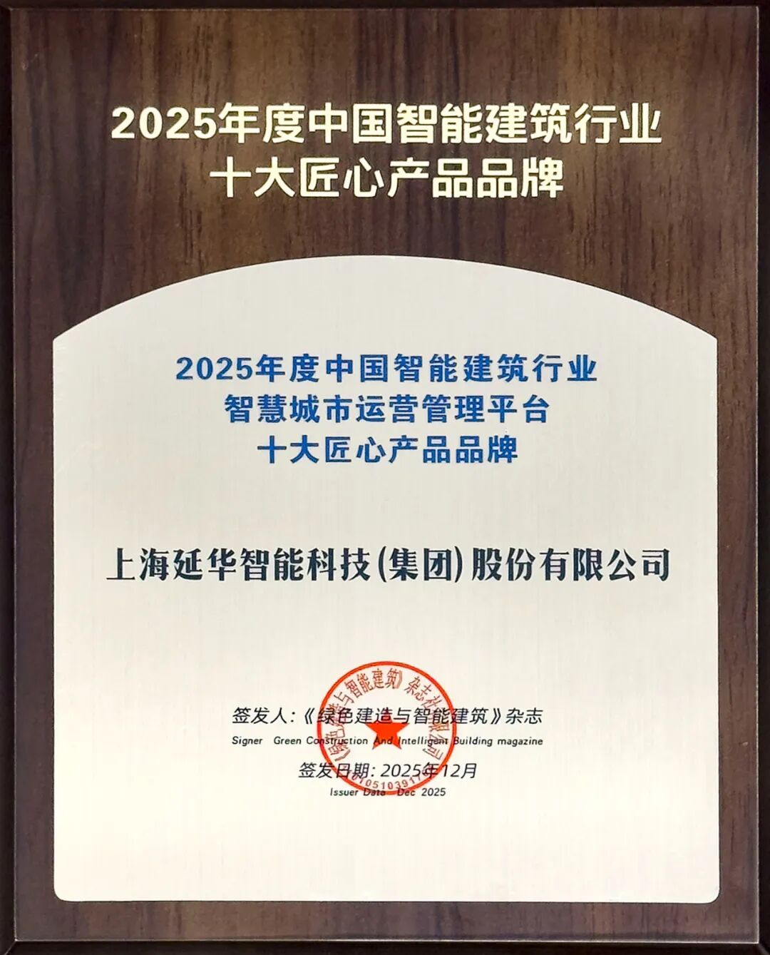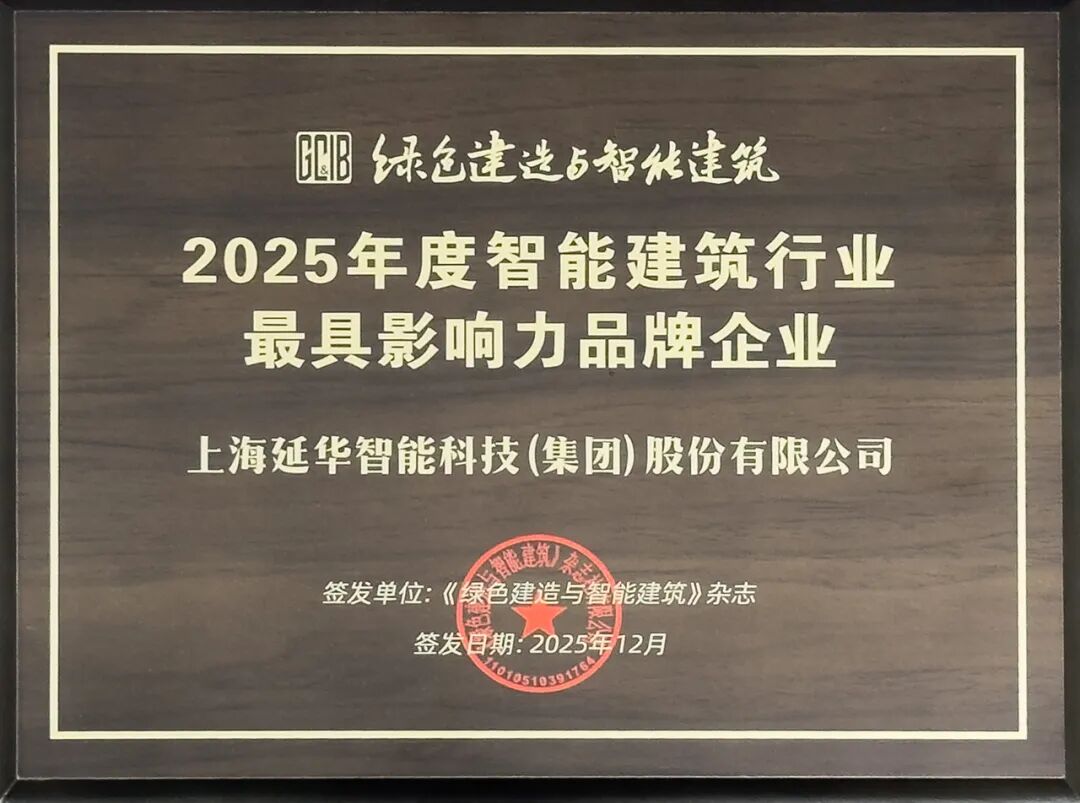 近日,延华智能凭借深厚的行业积淀、专业的技术实力与完善的服务能力,斩获“2025年度智能建筑行业最具影响力品牌企业”和“2025年度中国智能建筑行业十大匠心产品品牌”,充分彰显了延华集团在智能建筑与智慧城市领域的领先地位与持续创新成果。