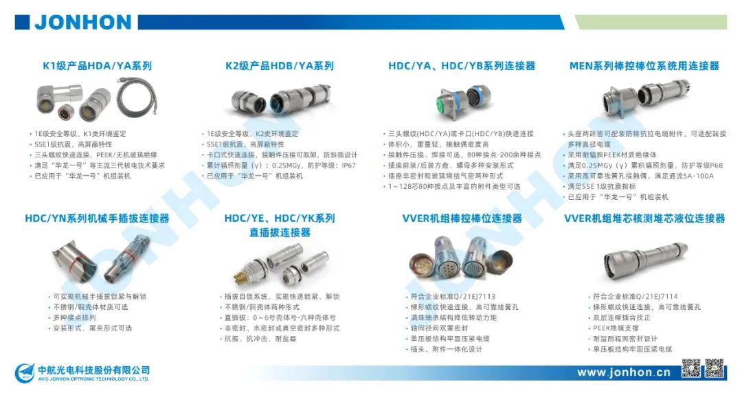 作为专业为航空及防务和高端制造提供互连方案的高科技企业,中航光电为本次展会准备了全面的核电领域连接技术解决方案,欢迎新老朋友前来展位参观、交流!