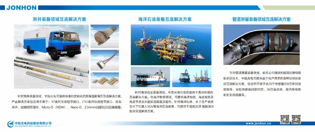 作为行业领先的互连方案提供商,中航光电科技股份有限公司(以下简称“中航光电”)为本次新技术成果展带来了专业、可靠的油气领域互连解决方案,其中涵盖石油勘探用水下连接器、钻井用防爆类电源及信号连接器、测井用高温高压连接器等全系列产品,吸引了众多专业人士前来参观、交流。