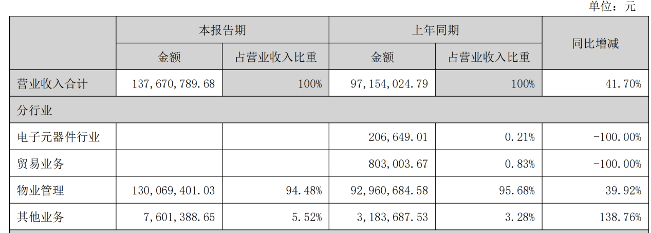 在2022年中期业绩报中,巴士在线的营收结构划分为物业管理、其他业务两项,而原先的电子元器件行业、贸易业务已经不再贡献收入了。