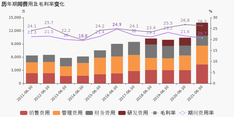公司2021半年度营业成本4.9亿,同比增长39.7%,高于营业收入38.6%的增速,导致毛利率下降0.6%。期间费用率为20.7%,较去年下降0.9个百分点。经营性现金流大幅下降66.3%至4378.1万。公司研发投入大幅增加,相比去年同期增长65.2%达到2971.1万。