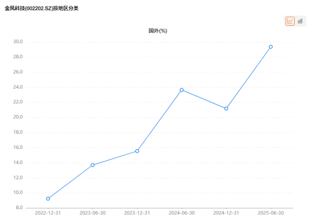 (金风科技海外营收占比,来源:Choice数据)