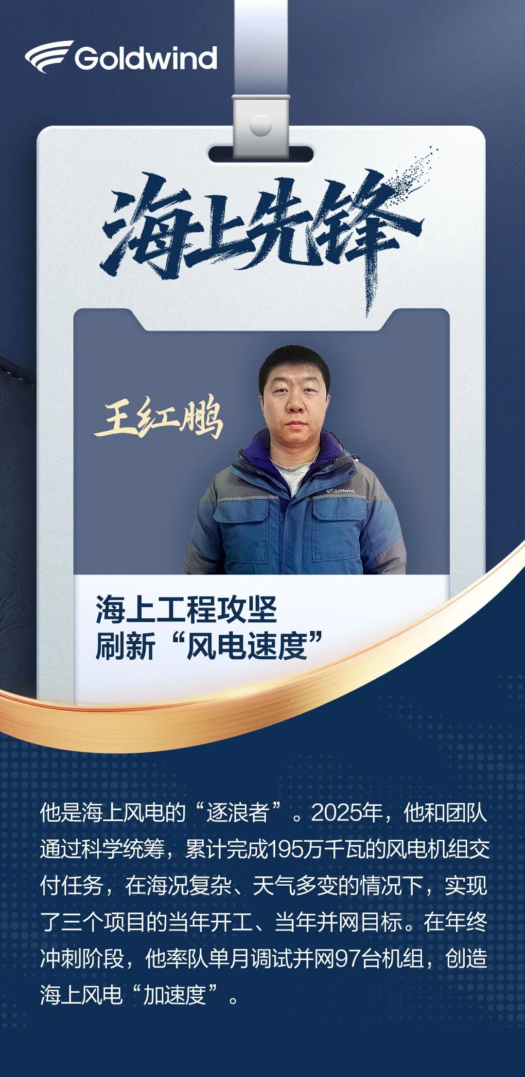 四位“青年先锋”的事迹,生动诠释了中国风电人的奋斗底色。风电这片创新与实践的热土,正在呼唤着更多怀揣理想、脚踏实地的“生力军”,向2060年50亿千瓦风电装机目标迈进,为世界能源变革贡献力量。