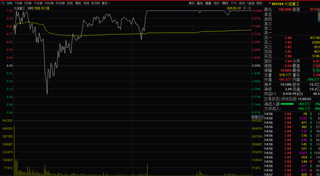 值得一提的是,大连重工的二级市场股价在7月7日盘中呈现出了“天地天”板的走势。