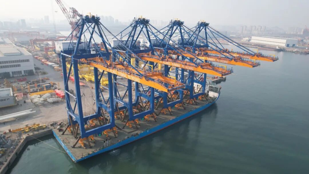 近日,大连重工下属港机事业部为印尼三宝垄研制的4台65t岸桥全面完成厂内制造任务,正式启程发运。该项目是事业部首次研制的65t起重量自行式小车岸桥,设备外伸距48米,整机重量达1162吨,具有起重量大、起升速度快的特点。