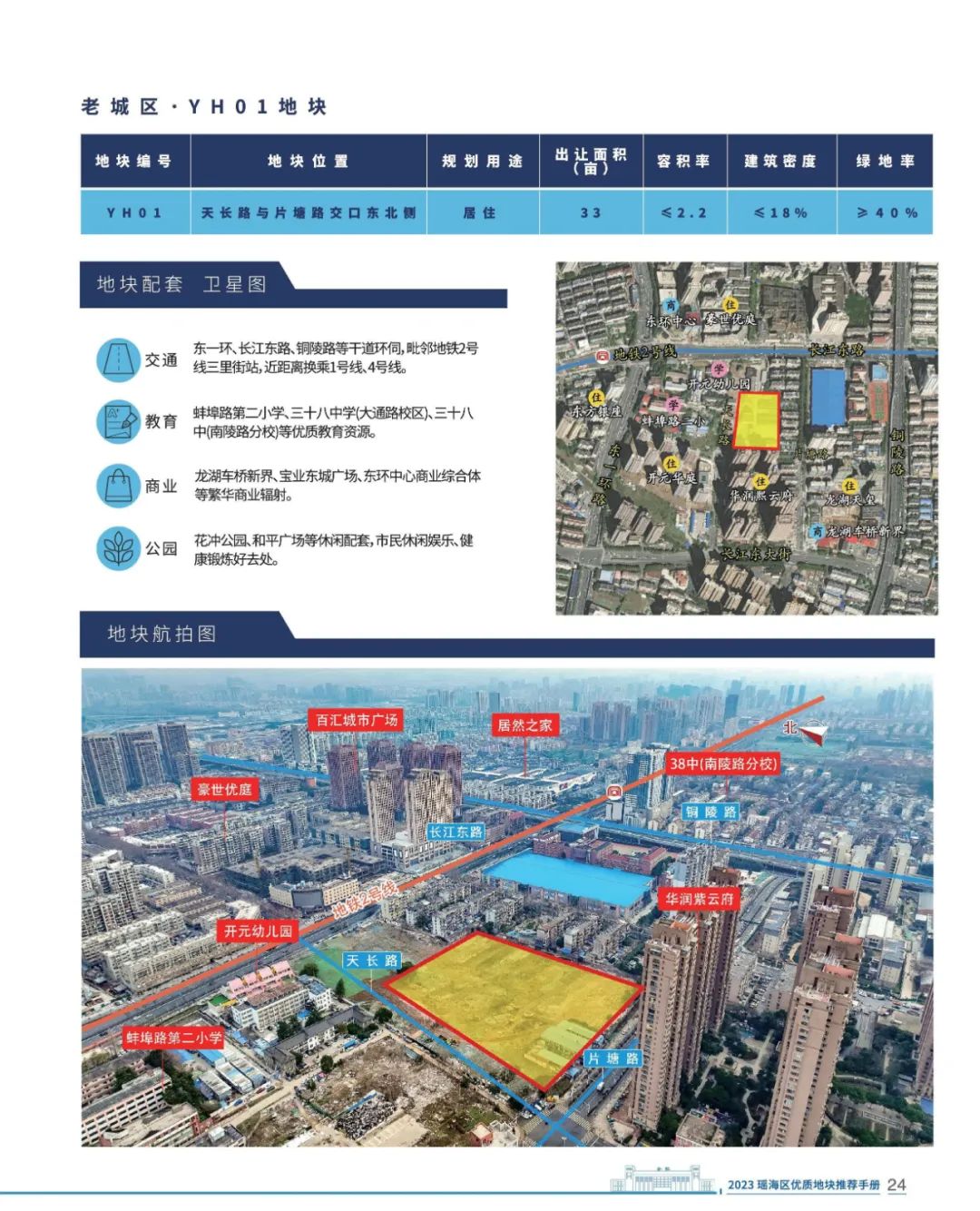 瑶海区YH202301号地块位于瑶海区天长路以东、片塘路以北,土地面积33亩,规划居住,容积率≤2.2,起始价居住1305万/亩;居住最高限价1500万元/亩;