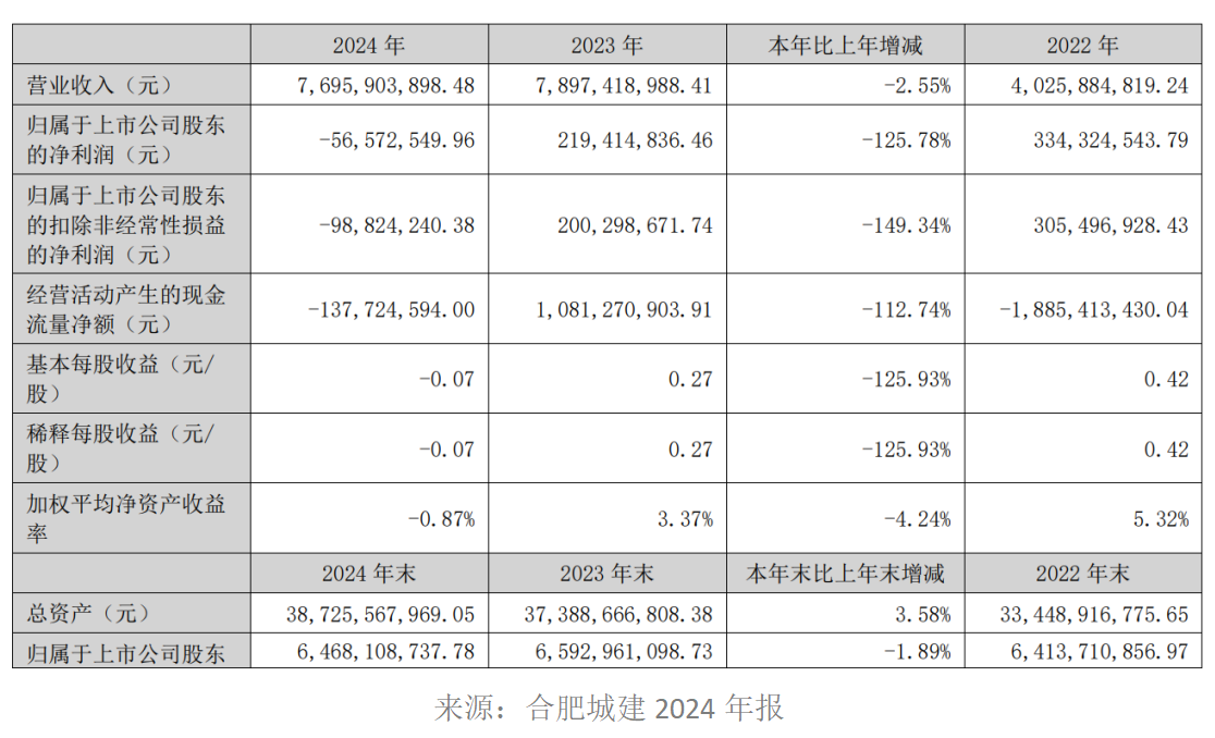 自2008年上市以来,合肥城建首次出现年度亏损。