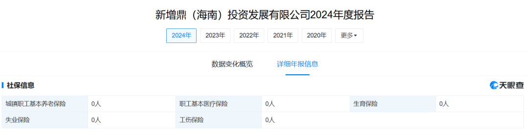 值得注意的是,数据显示,新增鼎在2021年和2022年的参保人数分别为2人和7人,但在2023年和2024年,其参保人数均为0。