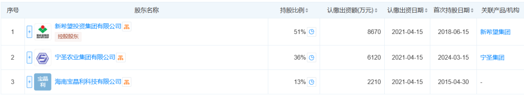 新投集团持有新增鼎51%的股权,而海南宝晶利科技有限公司持有新增鼎13%的股权,两者均为刘永好实际控制的企业。