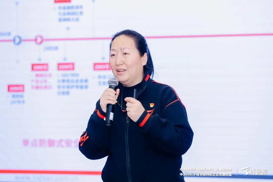 专精特新企业党建联盟会长、天融信科技集团党委书记、董事长兼CEO李雪莹向到场嘉宾和企业代表做了题为《企业发展与成长》的主题分享。她从企业的业务与成长、企业党建工作促进业务发展两个方面进行详尽演讲,介绍了天融信成立28年以来与中国网络安全行业同发展共成长的心路历程,充分展示了在专业领域深耕的企业应如何适应行业与环境的变迁,坚持研发与市场并重的经营思路,为在场专精特新企业分享了扎实谋求企业强发展的鲜活案例,使在场企业深受启发。她表示,作为联盟会长单位,天融信将竭尽所能为成员企业提供网络安全合规建设、网络安全事件应对、企业上市安全评估三方面的服务和咨询,努力做好联盟成员企业发展路上的引领者和护航者。在党建方面,天融信科技集团也为联盟成员企业做出了表率。在集团发展过程中,天融信党委始终坚持加强自身建设,全面落实党领导业务,党委班子和企业领导班子高度融合,为公司业务发展提供了坚实的组织保障和思想保障。天融信党委创建“红色天融信”党建品牌,积极发挥党员先锋示范作用,让每一名党员都力争成为公司战略落实的推进器、业务能力提升的排头兵、体系团队协作的粘合剂。