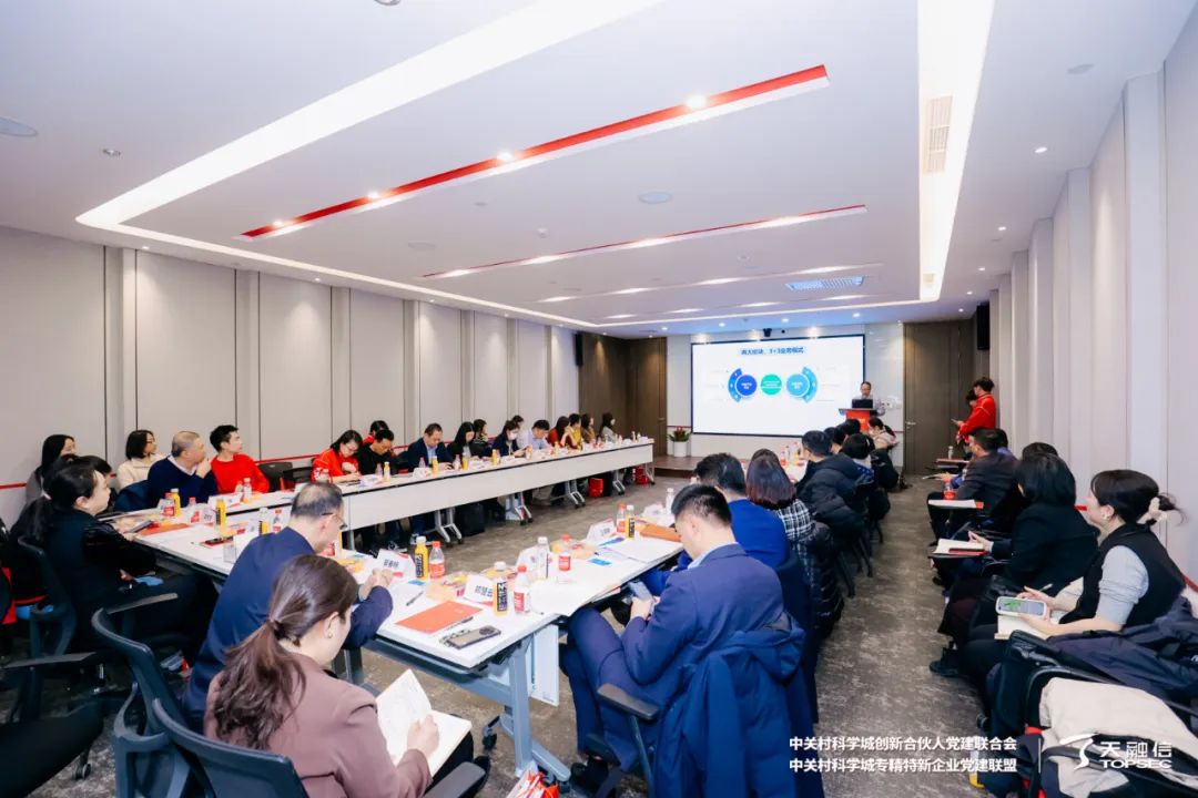 中关村科学城非公党建处处长赵可,副处长曹舟,中关村科学城创新合伙人党建联合会党委书记、秘书长吴春明,中关村科学城专精特新企业党建联盟首任会长、天融信科技集团党委书记、董事长兼CEO李雪莹,天融信科技集团党委副书记、副总裁刘蕾杰,以及来自中关村科学城专精特新企业党建联盟的20余家成员企业代表出席活动。