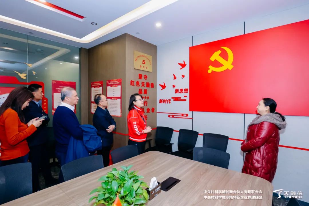 交流活动前,在天融信科技集团党委副书记、副总裁刘蕾杰引导下,嘉宾们参观了天融信展厅及党建活动室。