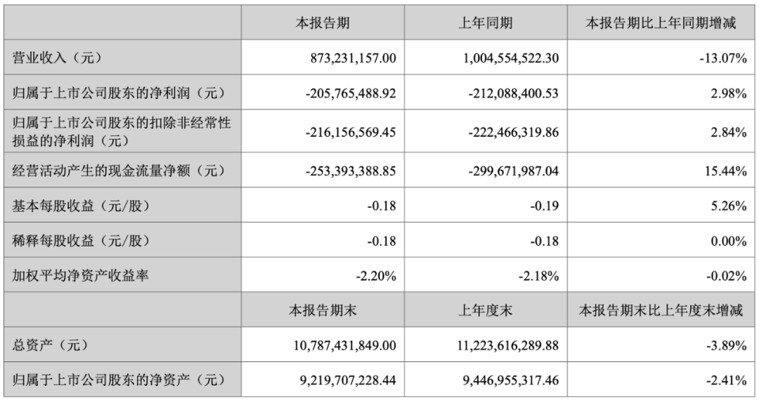2024 年上半年营收 8.73 亿,同比减少 13.07%;亏损 2.06 亿,同比减少 2.98%。
