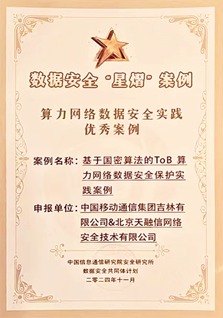 会上正式公布了2024年数据安全“星熠”优秀案例名单,天融信与吉林移动联手打造的《基于国密算法的TOB算力网络数据安全保护实践》、与安徽移动等共同打造的《安徽移动助力“数字江淮”算网一体化政务云数据安全运营》两大案例成功入选,充分彰显天融信在数据安全领域卓越的技术实力与丰富的实践能力。据了解,“数据安全共同体计划”发起的“星熠”案例征集活动,旨在发挥优秀案例示范引领作用,加强优秀案例推广。