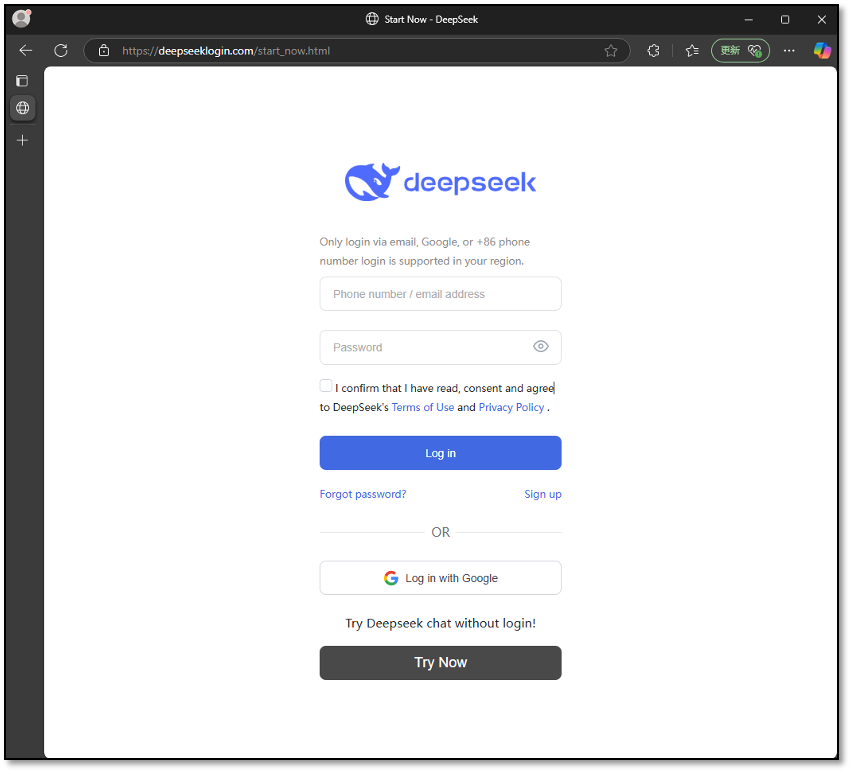 目前仍在活跃的有两类典型钓鱼攻击。第一类是窃取登录凭证的钓鱼网站,通过钓鱼网站诱导用户输入登录凭证,如deepseeklogin.com所展示的情况。