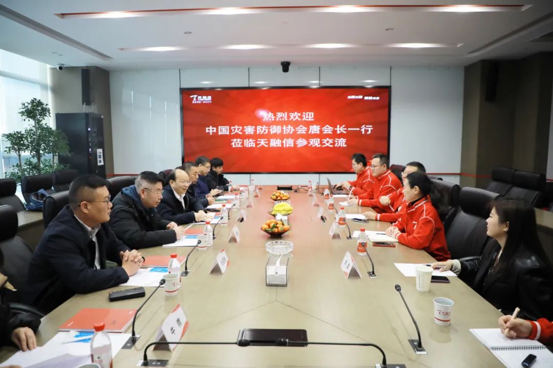 天融信科技集团副总裁唐宁对唐豹副会长一行的到访表示热烈欢迎。他详细介绍了天融信在应急行业的能力、解决方案和落地案例,并特别提到AI赋能打造的天问能力体系在防灾减灾方面发挥重要作用。唐宁希望双方充分发挥优势、凝聚合力,持续深化网络安全与灾害防御领域的协同合作,共同探索数字化技术在应急行业与防灾减灾领域的创新应用。