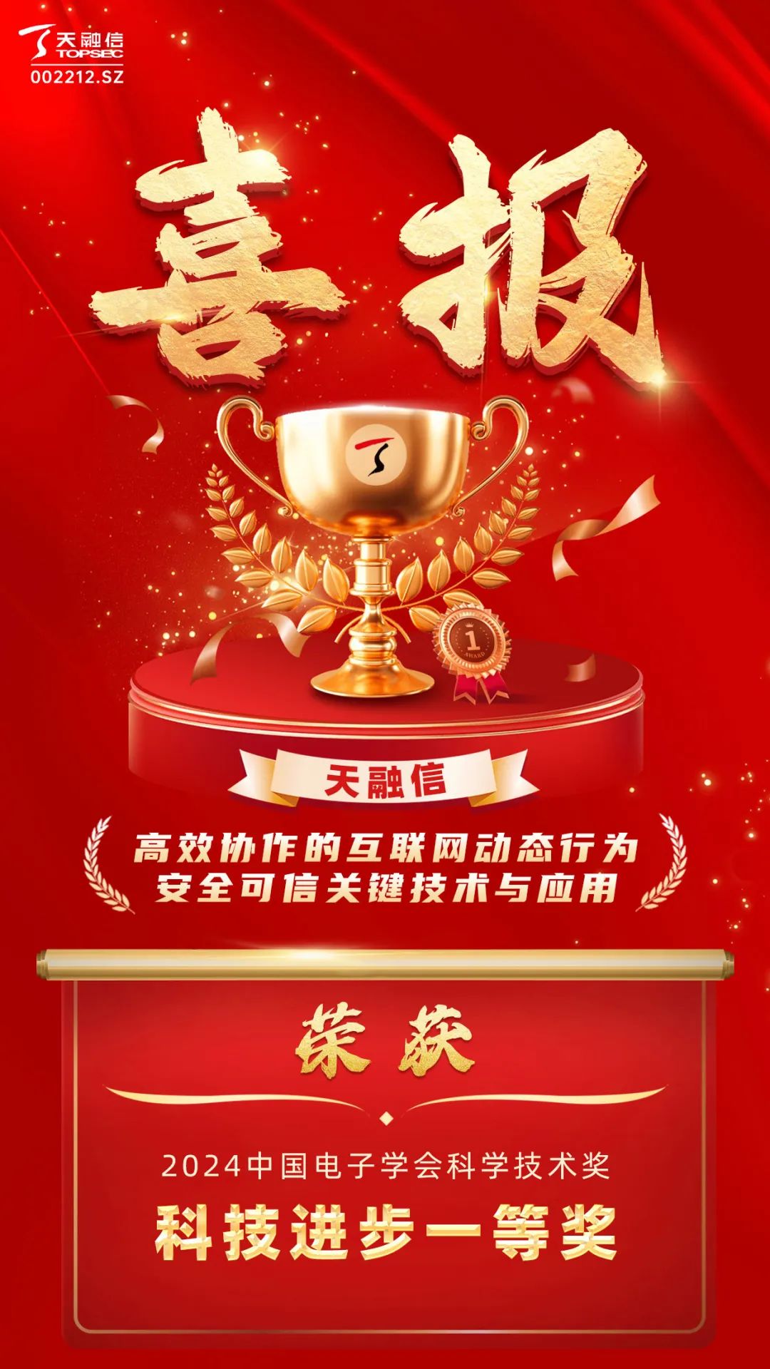 中国电子学会科学技术奖是经国家科学技术奖励工作办公室批准设立的奖项,主要奖励在电子信息领域科学研究、技术创新与开发、科技成果推广应用和实现产业化方面、以及在科学普及工作取得卓著成绩或者做出突出贡献的个人和集体。此次获奖,是对天融信在促进我国网络空间安全领域科技进步、支撑产业核心技术创新方面的充分肯定。
