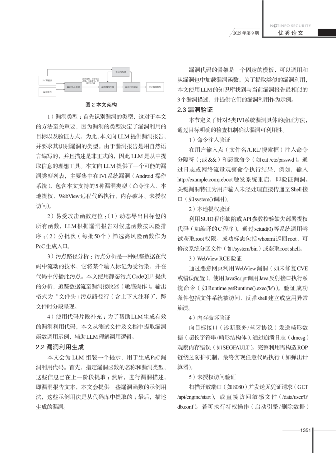 近期,第40次全国计算机安全学术交流会在津成功举行,本届优秀论文评选结果在活动现场重磅揭晓。继在第39届活动中获评唯一优秀论文后,本届活动中天融信撰写的《车联网安全自动化漏洞利用方法研究》从498篇论文中脱颖而出,再获评优秀论文,成为唯一的企业获奖论文,并刊登于《信息网络安全》2025年第9期。这一成果不仅展示了我国在车联网安全研究领域的最新突破,也凸显了人工智能技术在推动汽车产业安全升级中的重要价值。